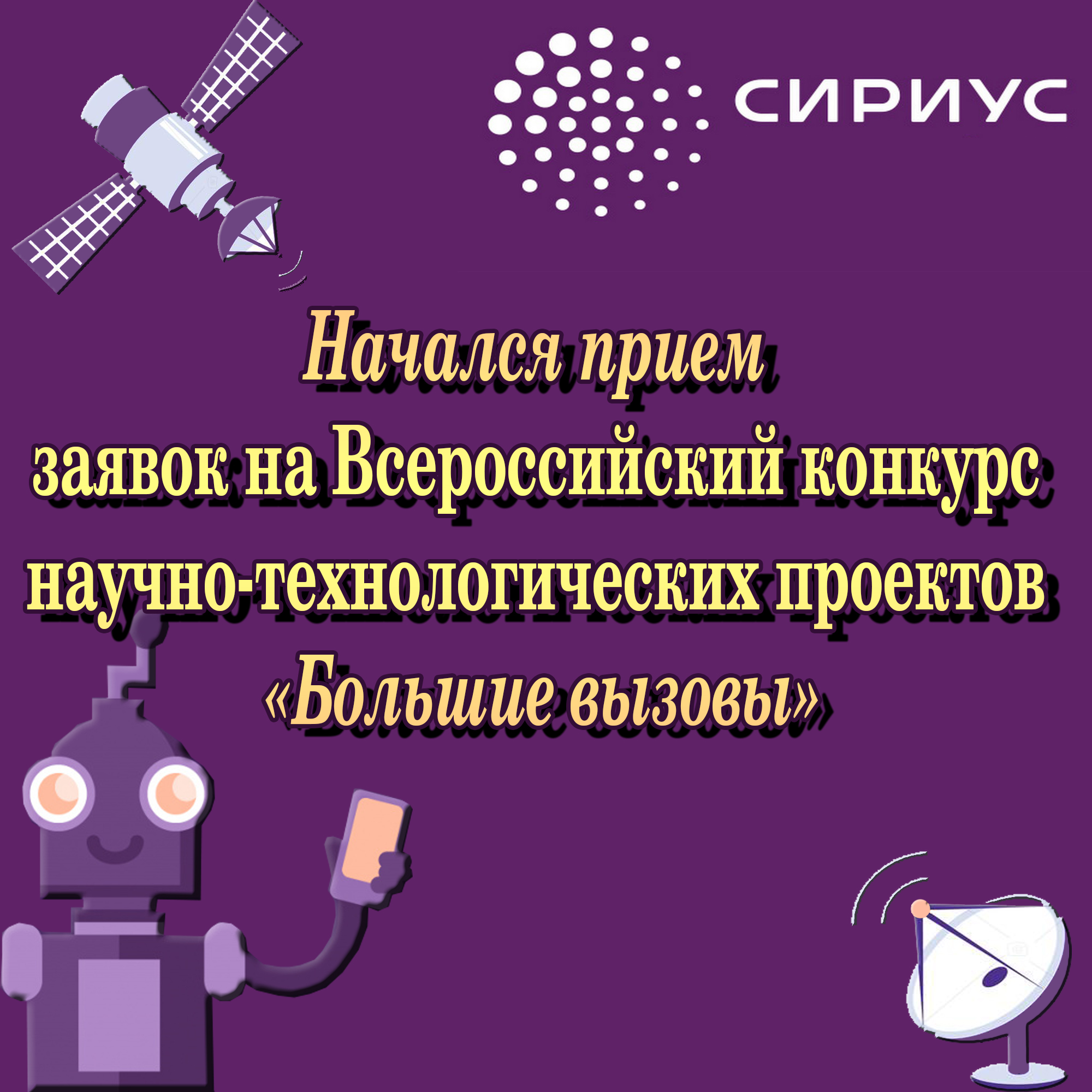 Всероссийский конкурс научно-технологических проектов «Большие вызовы» — это масштабное мероприятие для школьников, занимающихся научной или исследовательской деятельностью. В этом году конкурс, который организован Образовательным центром «Сириус» для школьников 7–11 классов, проявляющих интерес к научно-исследовательской деятельности и техническому творчеству, проводится уже в пятый раз. По традиции победители и призеры конкурса примут участие в научно-технологической программе «Большие вызовы», которая пройдет в Центре в июле 2020 года подробнее по ссылке
