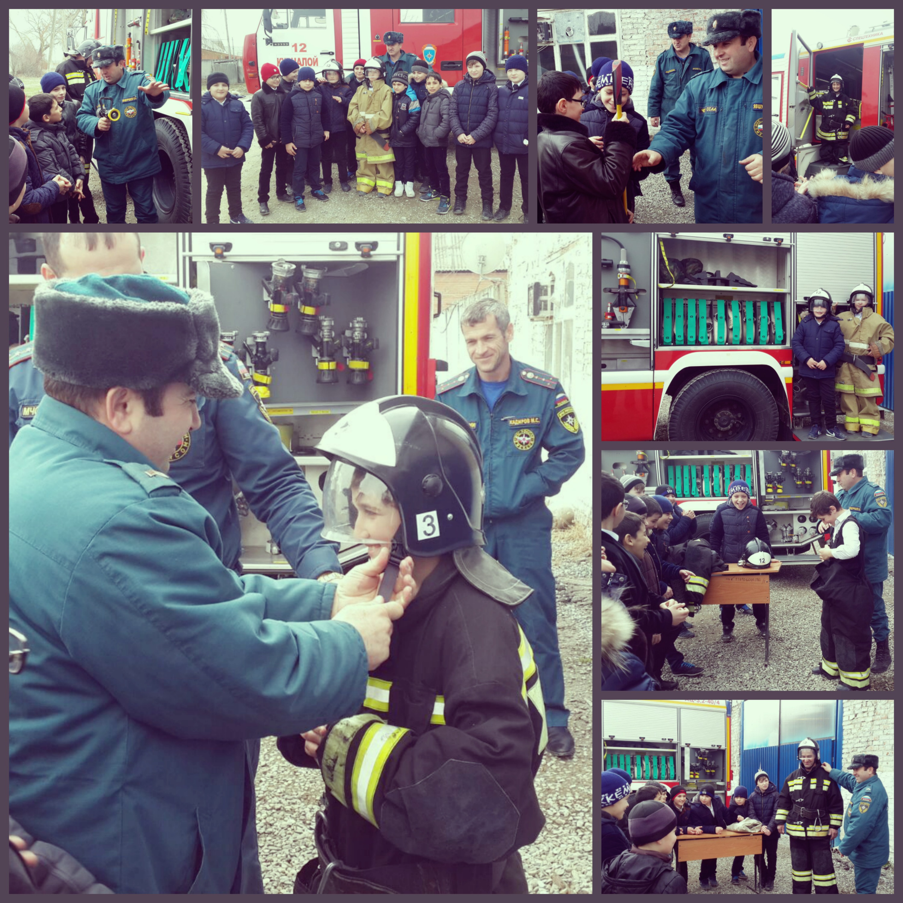 Что при пожаре нужно звонить 01, а вот работники МЧС объяснили детям, какие номера у сотовых телефонов Билайн и Мегафон. Дети с удовольствием рассматривали большие пожарные машины, которые тушат пожар. Увидели, как правильно пользоваться противогазом при сильном задымлении. Детям все было интересно, попросили разрешение примерить каски и перчатки, на что им естественно было дано разрешение. Затем побывали в диспетчерской, куда приходят вызовы о пожаре. На все вопросы учеников ответ держал пожарный Явшуркаев Альви. Он показал технику, оборудование, боевую одежду пожарных, рассказал о службе и их профессиональных действиях, о причинах возникновения пожара, ознакомил со свойствами и качествами предметов с точки зрения их пожарной опасности, обучил детей мерам безопасного поведения в случае возникновения пожара, рассказал о необходимости правильно ориентироваться в пространстве помещения во время пожара, умения вызывать экстренную службу спасения по телефонам «01» или «112». Для детей профессия пожарного – это профессия, ассоциирующаяся исключительно с героическим образом. Они понимают, что пожарный – это человек, который всегда приходит на помощь.Дети остались довольные встречей, получили бесценный багаж знаний. Надеемся, что полученные знания помогут предохранить их от попадания в сложные, чрезвычайные ситуации.Детям очень понравилось эта экскурсия, было очень много радости и восторга, когда вечером они рассказывали своим родителям.
