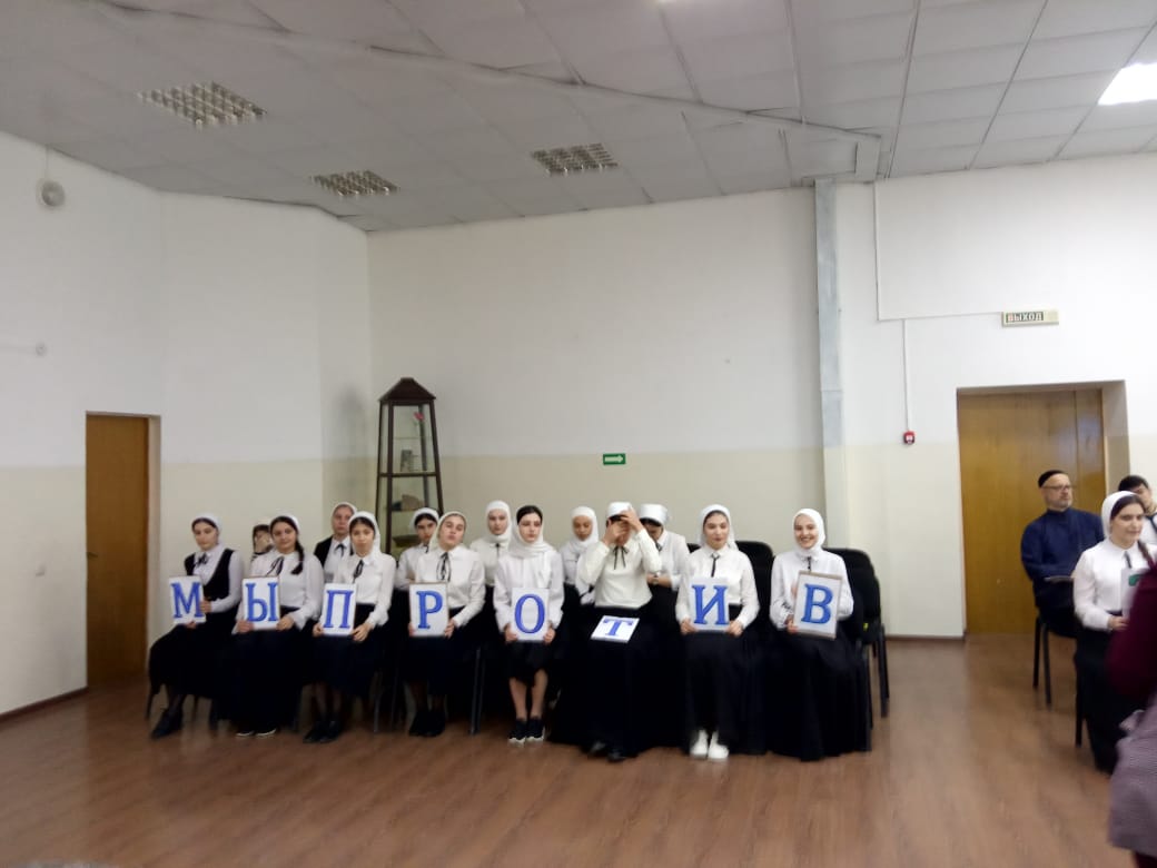 11.03.2020С детьми беседовали заместитель директора по безопасности Тамкаев И.А. и педагог организатор по ДНВ Эпендиев И.Р. о невозможности нанесения вреда самому себе, и тем более невозможности причинения себе смерти. О запрещенности этого в Исламе и в наших обычаях. На беседу были приглашены сотрудники ОПДН ОМВД России по Курчалоевскому району ЧР: