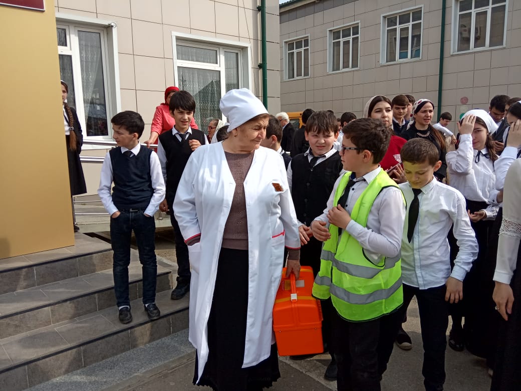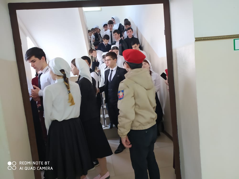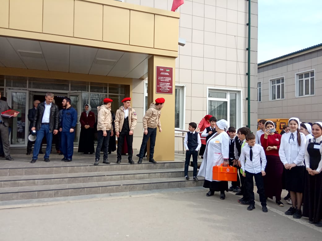 В ходе мероприятия, под руководством Тамкаева Ислама Адамовича, заместителя директора по безопасности,были успешно отработаны действия учеников, учителей и администрации центра образования на случай чрезвычайной ситуации.