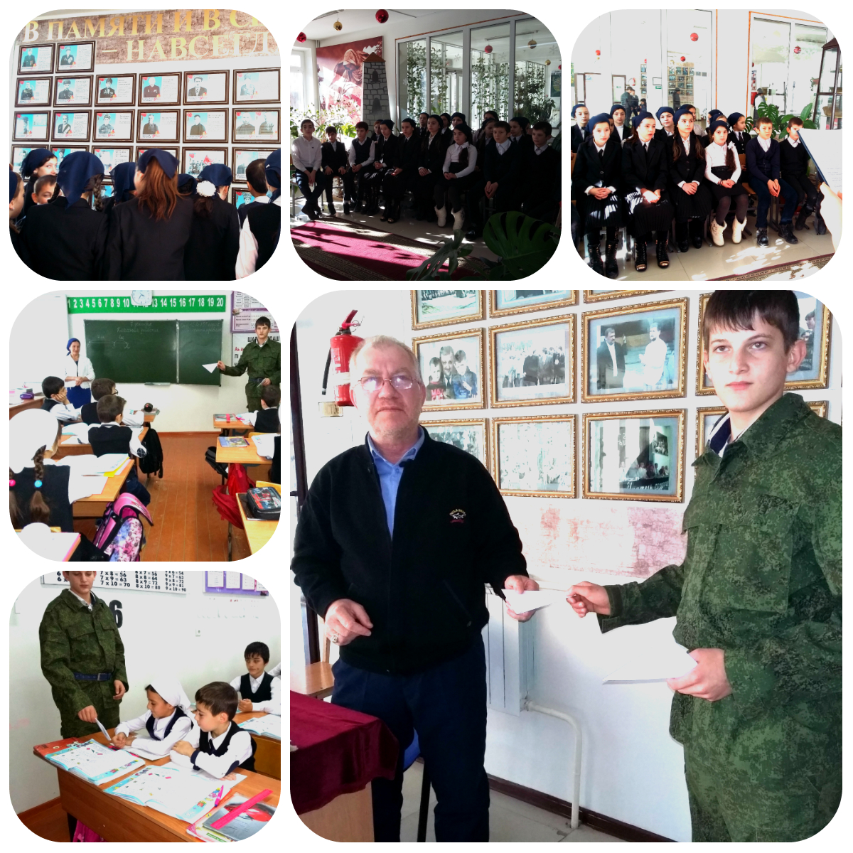 09.12.2016В целях формирования идеалов самоотверженного и бескорыстного служения Отечеству в нашей школе были проведены ряд мероприятий приуроченных Дню Героев Отечества: классные часы; уроки мужества и трудового героизма; конкурс сочинений «Они защищали Родину!»; Круглый стол: «Герой 21 века, кто он?» и т.д.