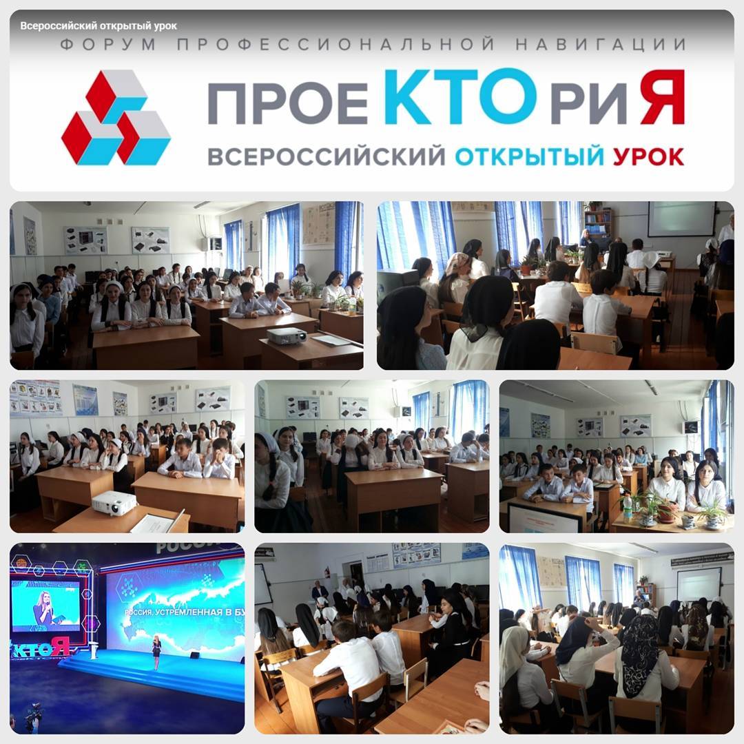 01.09.2017После торжественной линейки для учеников 9-11 классов был организован Всероссийский открытый урок «Россия, устремлённая в будущее». Тема урока – выбор профессии и своего призвания #ПроеКТОриЯ. Насыщенная программа форума заинтересовала многих учащихся, особенно ребятам понравились лекции о современных индустриях и профессиях будущего.