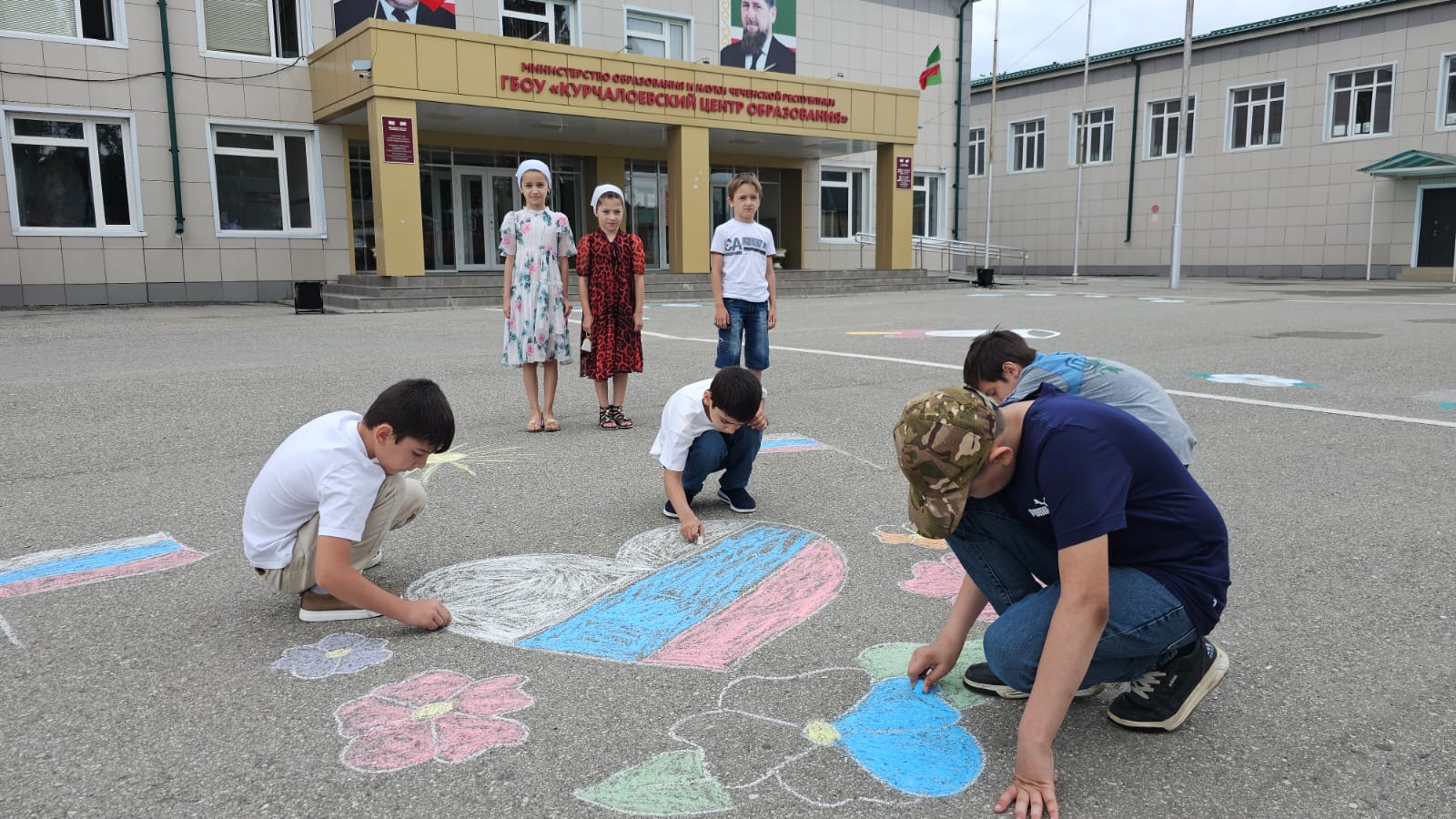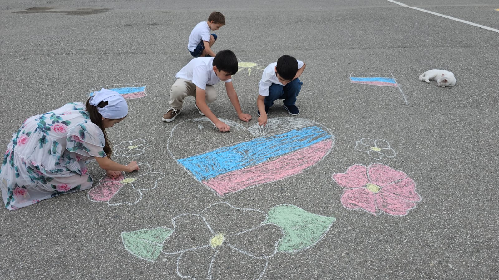 10.06.2024Рисунки на асфальте «Наш адрес – Россия» в честь праздника Дня России Дружная атмосфера способствовали активному творчеству ребят и созданию ярких рисунков. Через свой рисунок каждый ребенок старался показать гордость за свою Родину. Ребята с помощью цветных мелков выполнили на асфальте рисунки, в которые воплотили все свои самые интересные фантазии по данной тематике. Рисовать цветными мелками на асфальте — это счастье для юных художников. Асфальт расцветал красками, желтое солнце светило неровными лучами, на лугу расцвёл ковёр из разноцветных цветов, рисовали цветы, флаги, природу. Дети очень старались, аккуратно раскрашивая свои рисунки. Никто не скучал, были все заняты творчеством. Праздник прошел интересно и весело.