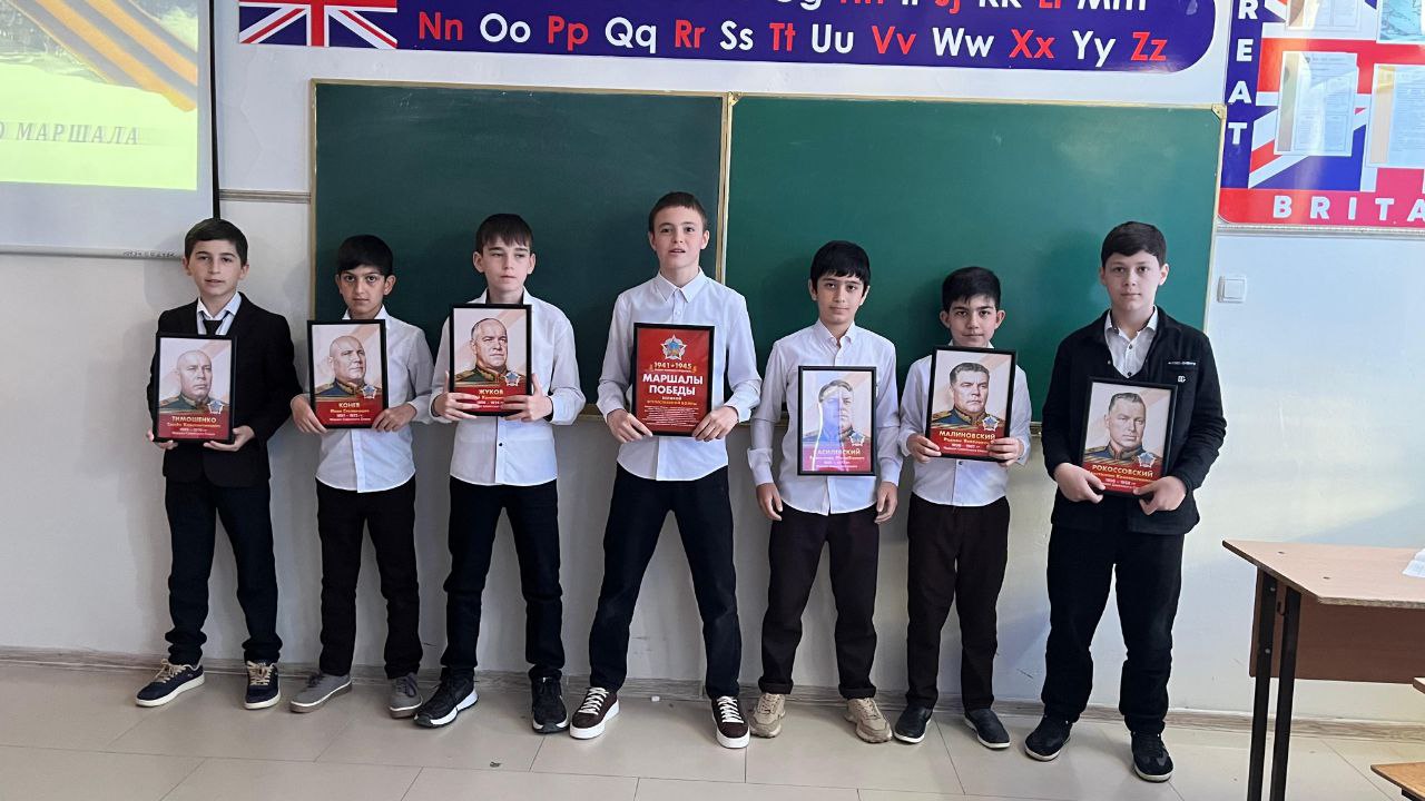 22.04.2025Классный час "Маршалы Победы", посвященного 80-летию Великой Победы 22 апреля прошел классный час на тему «Маршалы Победы», где ученики услышали рассказ людях, прошедших дорогами войны.Ма́ршал — это высшее воинское звание в армиях мира, выше старшего генеральского звания. Память об участниках Великой Отечественной войны бережно хранится в семьях. Также ученики познакомились с материалами по поиску пропавшего без вести солдата Берсанова Абади. Эти поисковые работы вела семья Берсановых. В нашей школе работают учителями математики внучки Абади, учатся правнуки.