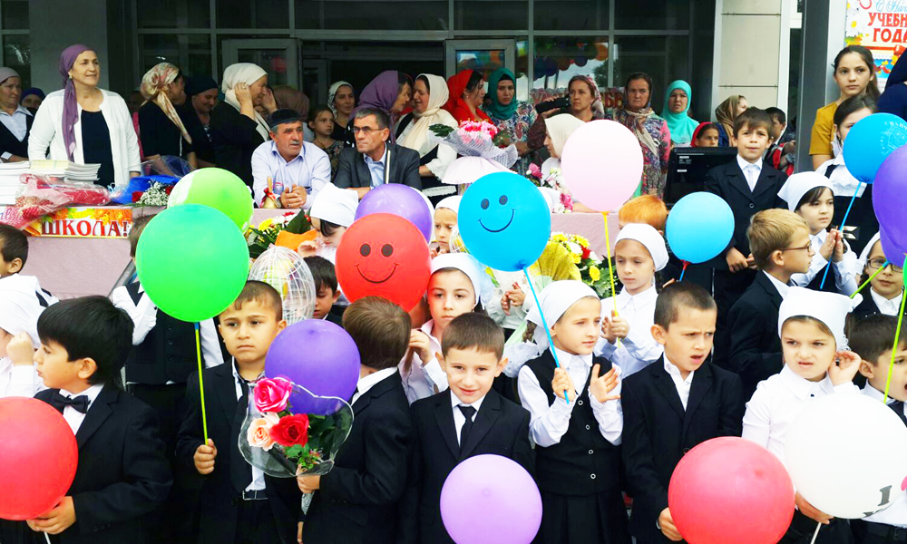 01.09.2015В нашей школе учебный год начался ярко, интересно и празднично. Под песню «Не повторяется такое никогда», дружно вышли 2-11 классы на линейку. Ведущие пригласили на линейку 199 первоклассников, которых вывели их классные «мамы» Дашаева Р.Ш., Исмаилова М.М., Хаджуева Х.А., Титиева А.С., Гучигова А.Х., Елдашева К.М. Директор школы поздравила всех присутствующих с праздником. Она рассказала, что в прошлом учебном году в школе обучалось 199 ученика первоклассника, Марьям Султановна поблагодарила их за старание и вручила каждому первокласснику альбомы.